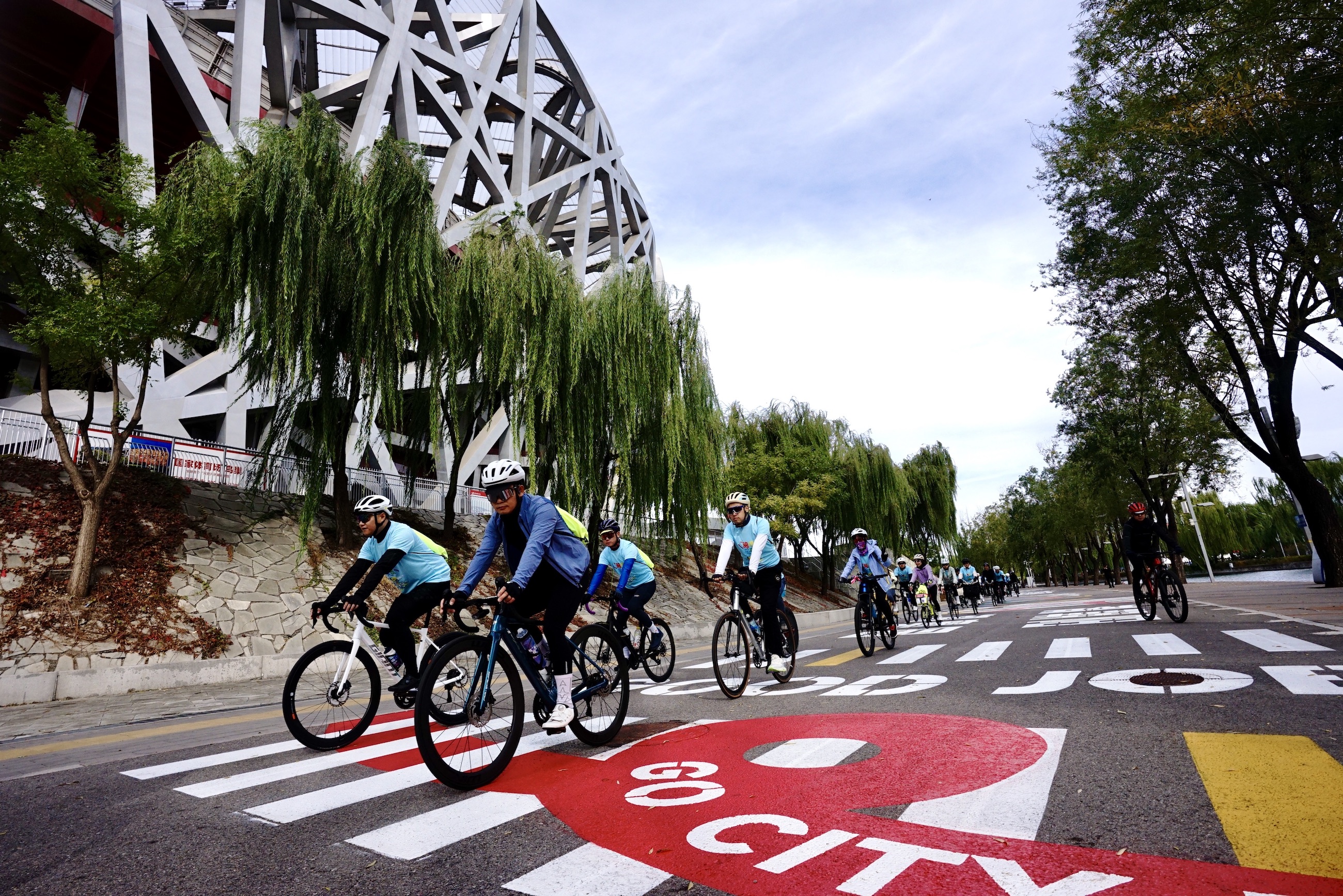 “騎”遇奧園 50余人沿彩虹騎行道打卡奧運場館